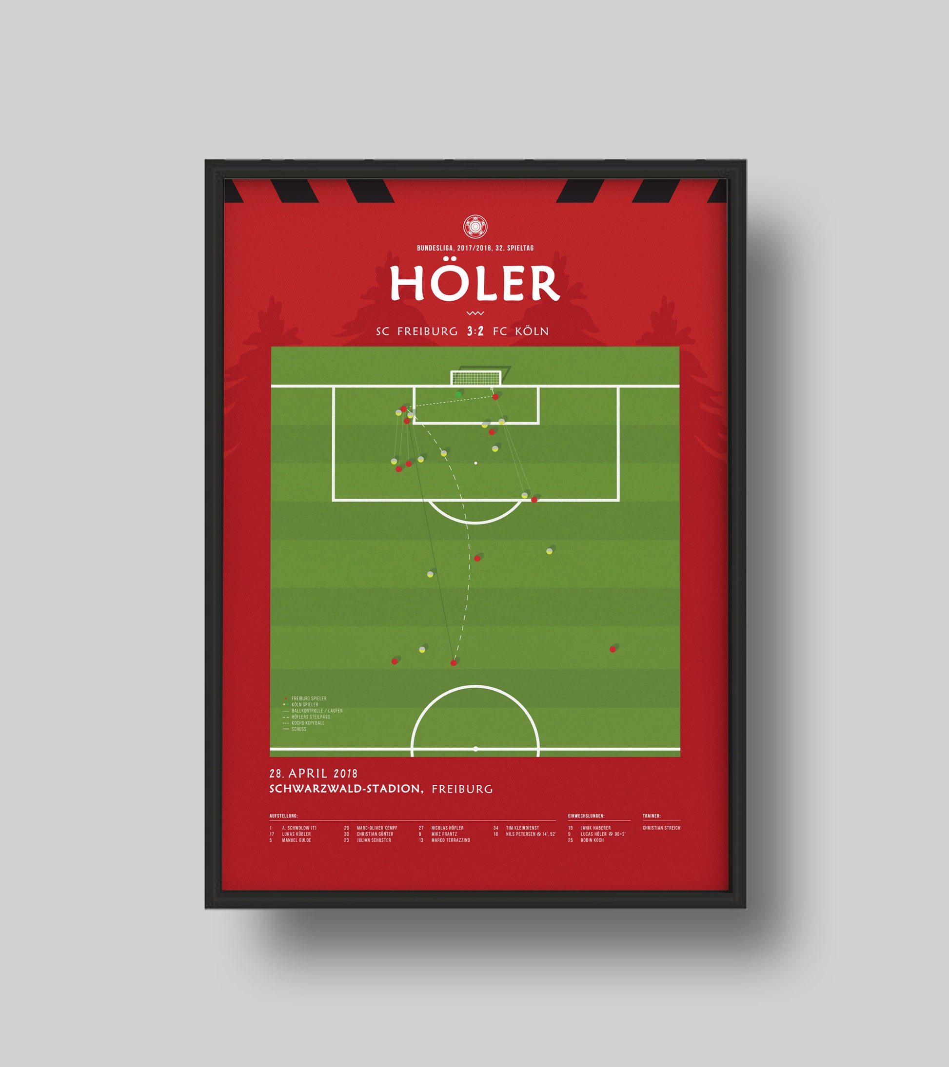 Wunderschön gedruckte Darstellungen entscheidender Tore aus wichtigen Spielen der Fußballgeschichte...