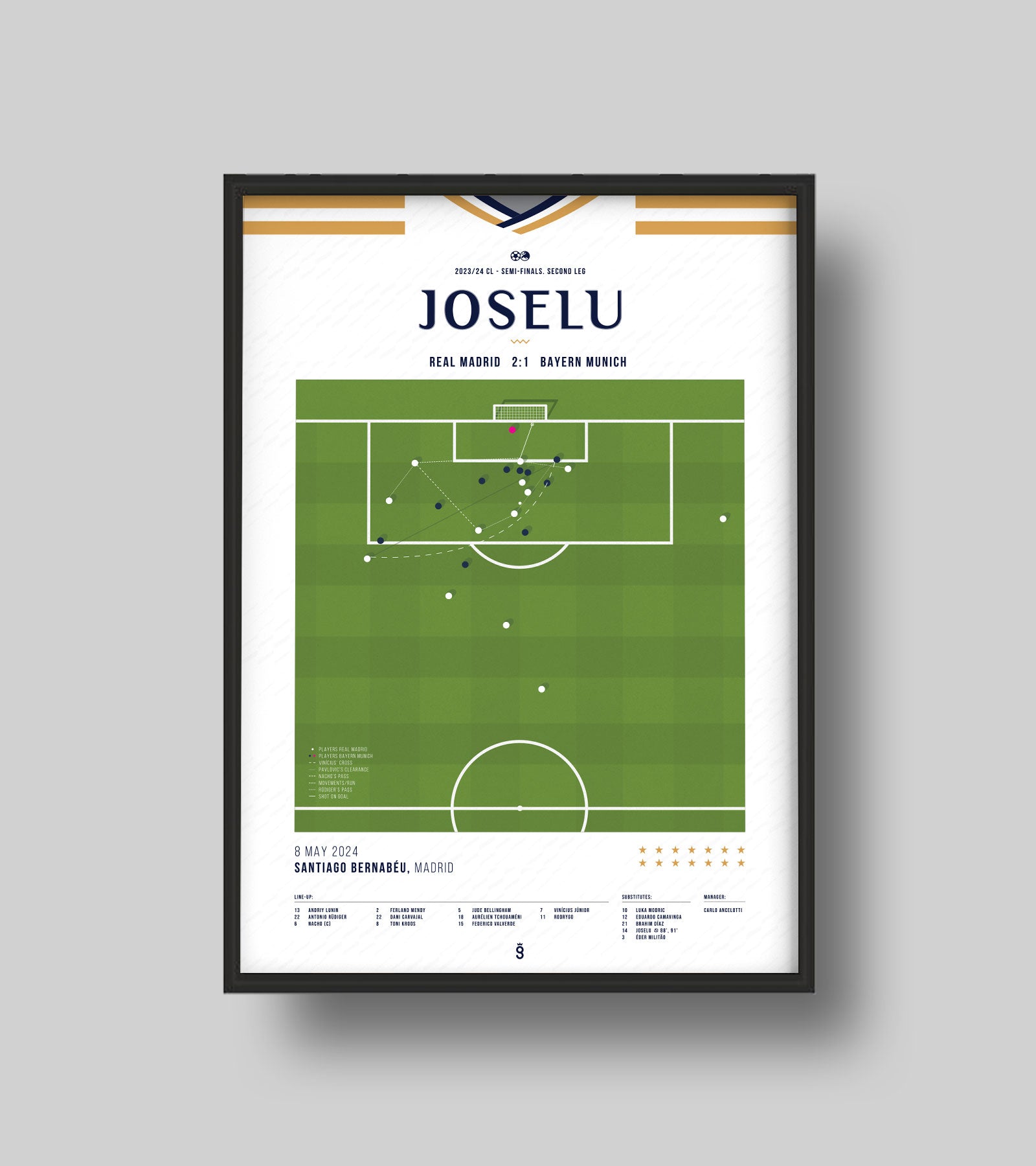In an unforgettable semi-final at the Santiago Bernabeu, Spanish striker Joselu emerged as the unlikely hero for Real Madrid. With the clock ticking down, his late double dramatically overturned the game against Bayern Munich, propelling Real Madrid into another legendary comeback.