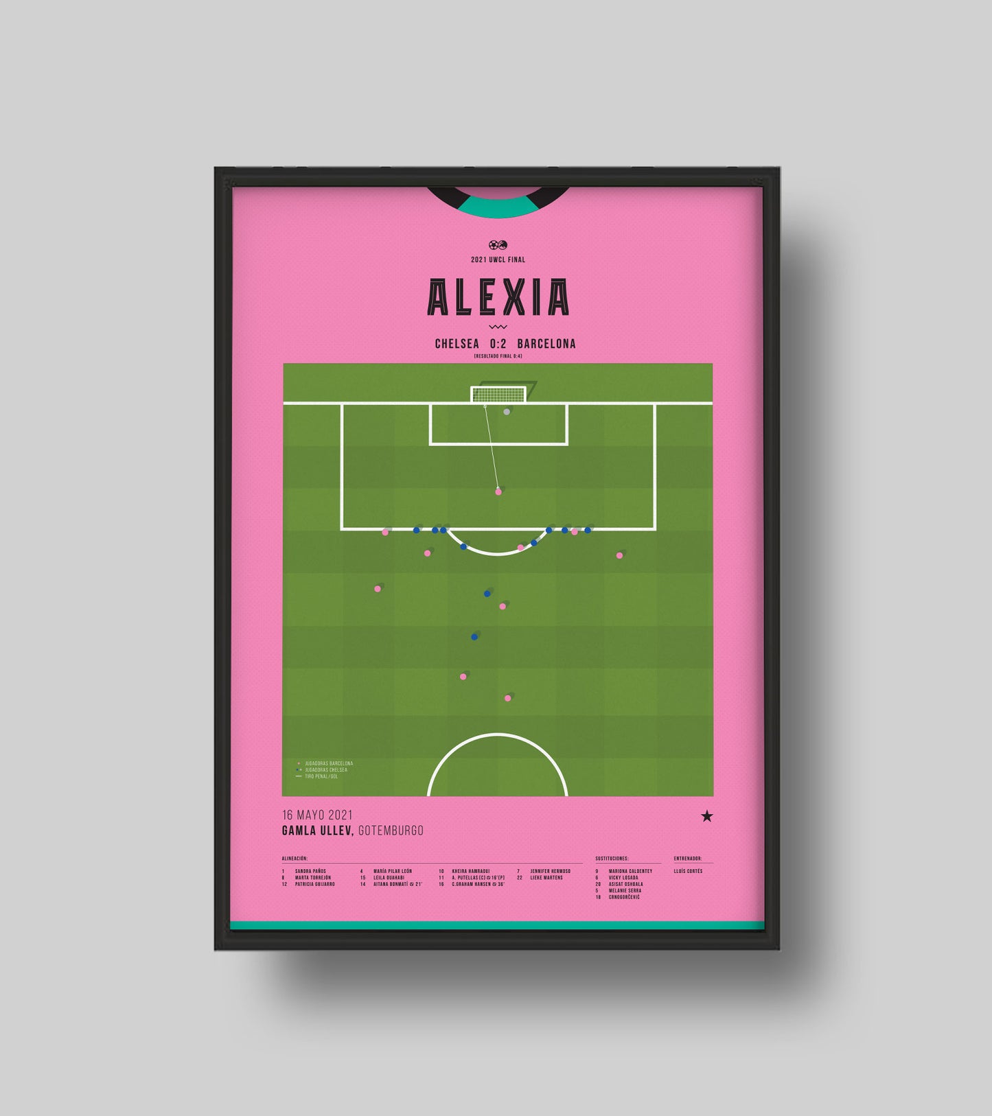 Alexia Putellas, captain of Barcelona and Ballon d'Or winner, ended the 2021 Final against Chelsea with a penalty kick.