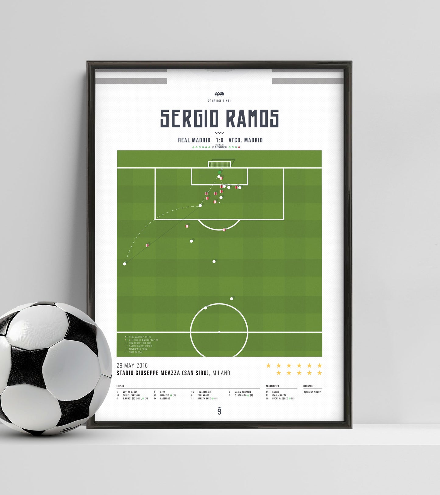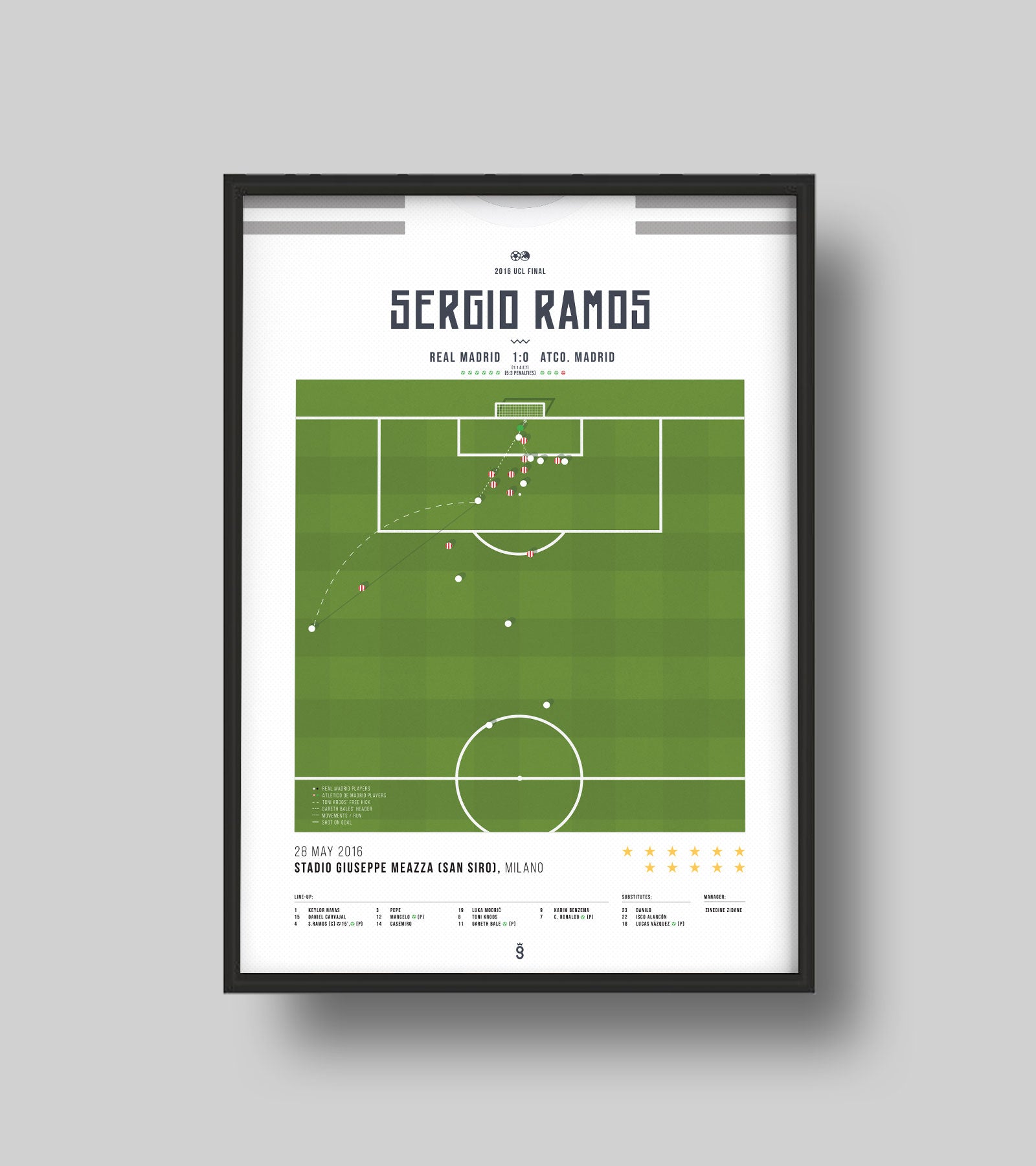 Sergio Ramos scored the opening goal for Real Madrid against Atletico Madrid in the 2016 final. It was his second goal in a final and led the way to the 11th title for 'Los Blancos'.